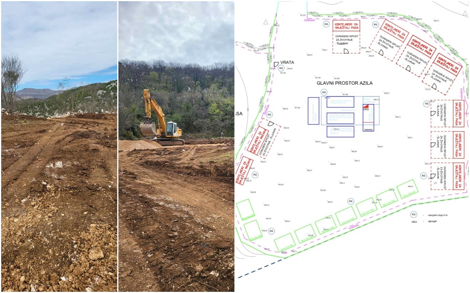 Budući da na lokaciji ne postoji infrastruktura za opskrbu električnom energijom i vodom ovim radovima predviđeno je isto osigurati fotonaponskom elektranom s pomoćnim agregatom te spremnikom za pitku vodu s pumpom. Odvodnja otpadnih voda predviđena je biološkim pročistačem i upojnim bunarom. Svaki kontejner za životinje sadrži ugrađenu odvodnu rešetku za redovno pranje i održavanje. Uz ovo je planiran i dodatni prostor za istrčavanje i socijalizaciju pasa.