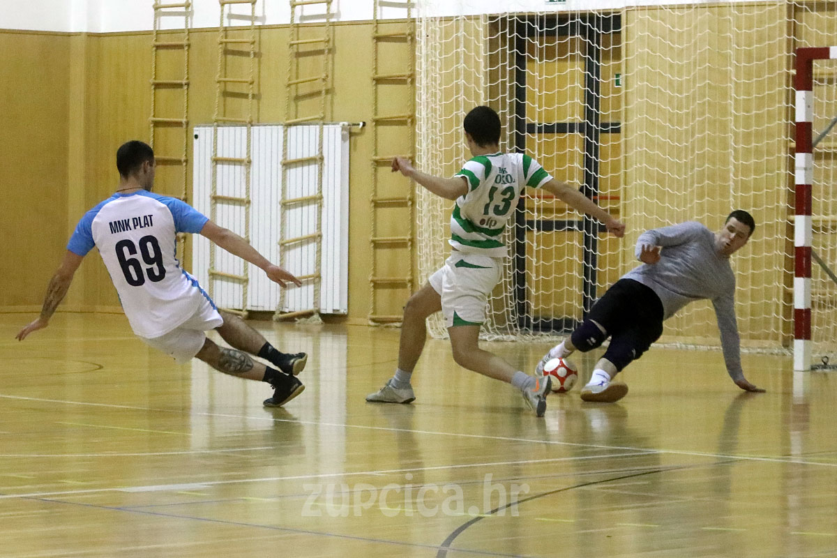 U svom 10. kolu Županijska malonogometna liga prvi put ove sezone je gostovala u župskoj školskoj sportskoj dvorni na Mljekari. Domaćin Plat je izgubio utakmicu od Sokola iz Dubravke. Sokol je vodo tijekom cijelog susreta, Plaćani stizali rezultat i dva puta došli do izjednačenja. Možda presudan trenutak susreta se dogodio početkom drugog dijela, kada pri rezultatu 2:2 u tijeku stalnih napada Plaćana dolazi do ozlijede Filipa Kurbelašvilija, što je dobrim dijelom otupjelo oštricu napada Plata. Gosti iz Dubravke u nastavku stižu na do kraja nedostižnih dva razlike.