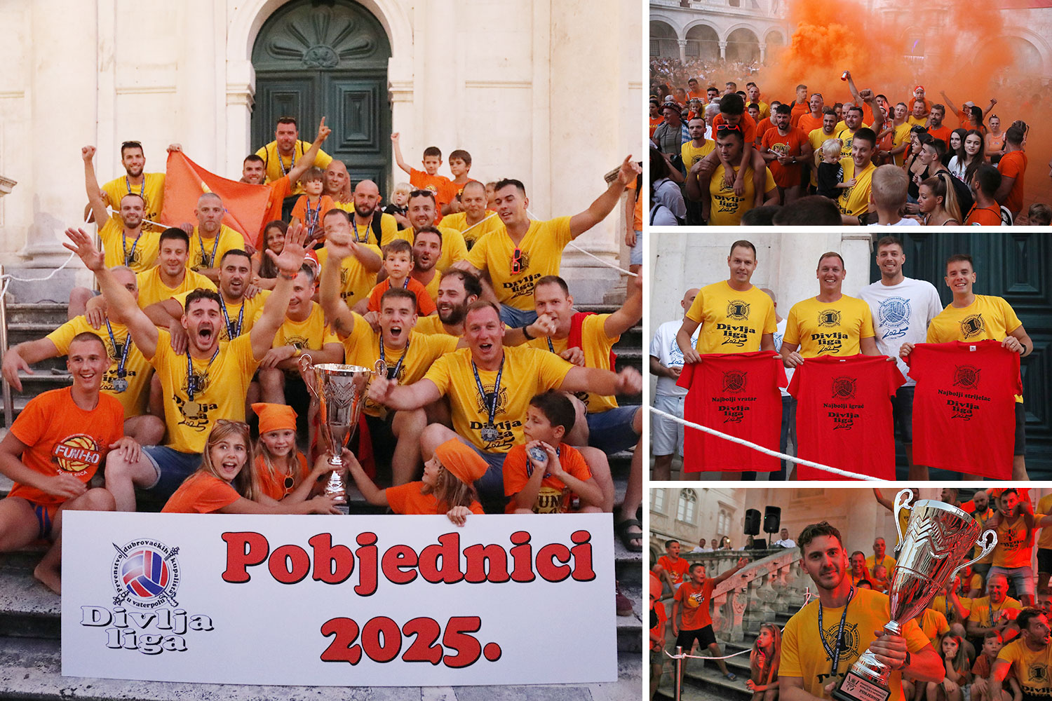Na skalinima sv. Vlaha narančasti su četvrti put podigli pehar prvaka Divlje lige. Kapetan Mato Miloslavić primio je trofej iz ruku župana Blaža Peza i predsjednika gradskog vijeća Marka Potrebice. Završila je još jedna Divlja liga koja je ove godine prošla u dominaciji narančastih koji su odnijeli i sve nagrade za najbolje pojedince.