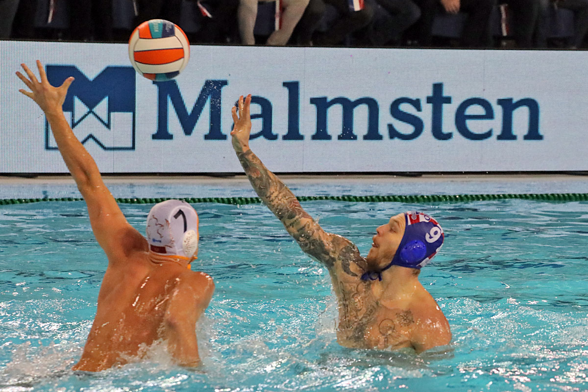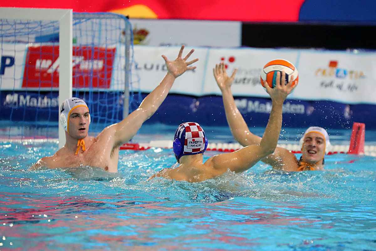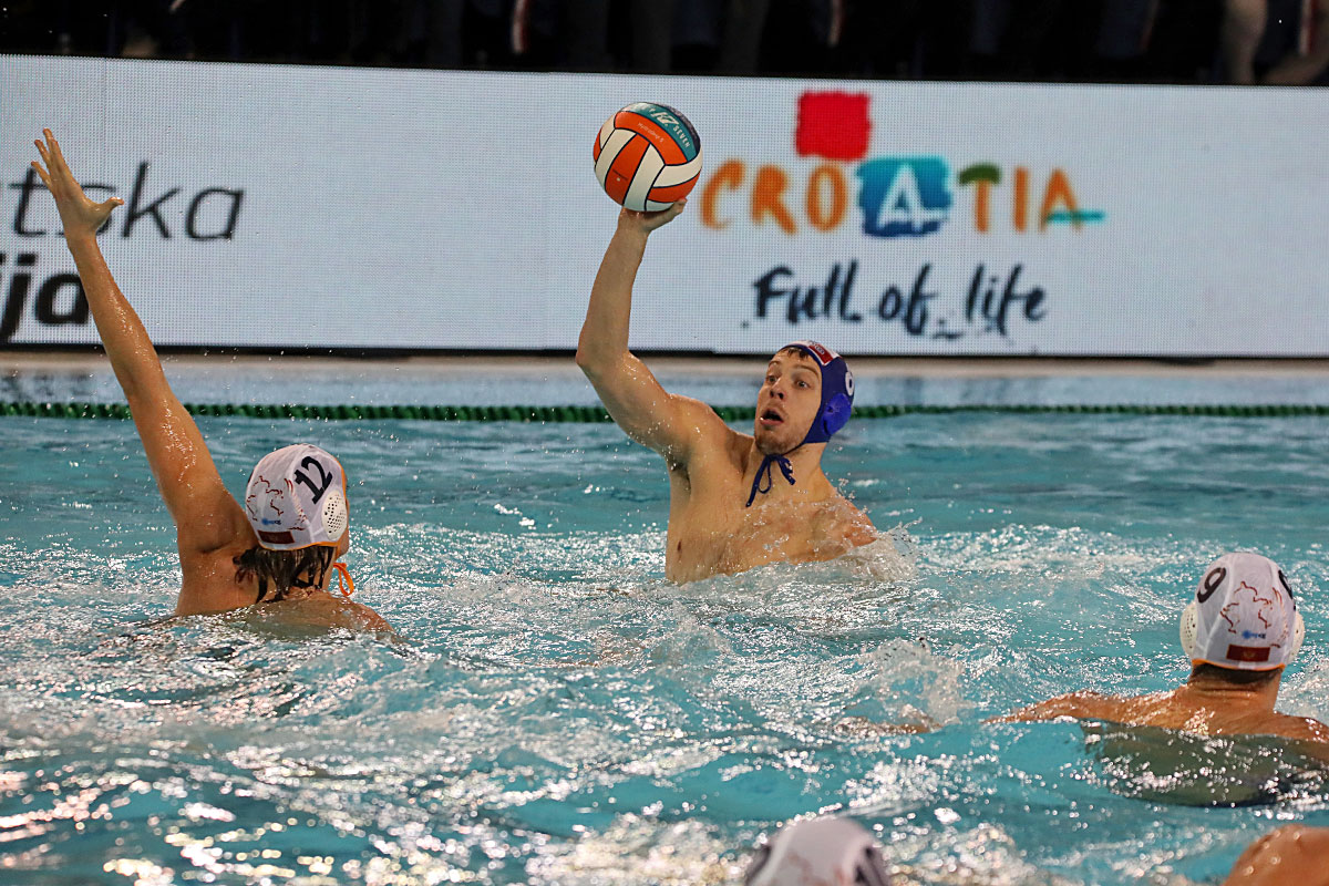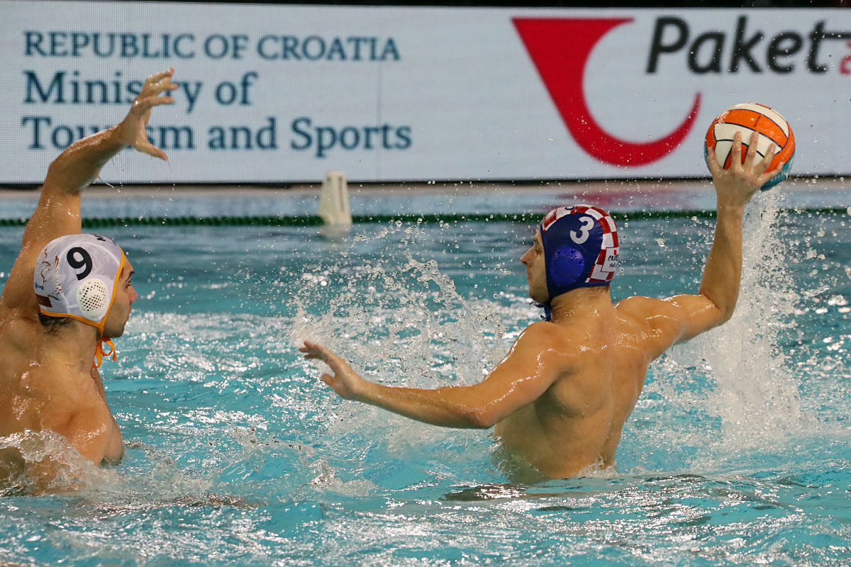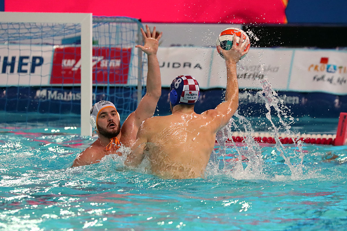 Nakon odličnog otvaranja i vodstva 2:0 u užarenom grotlu tribina gruškog bazena, Hrvatska opet kao i protiv Španjolaca pada u drugoj četvrtini kada Crnogorci preokreću na 6:5 i ima vodstvo od 9:7, ali tri uzastopna gola Crnogorcima pred sam kraj donose prednost od 9:10. Dvije minute prije kraja, kod 10:10 Crna Gora je zbog brutalnosti suđene Vladi Popadiću ostala do kraja susreta s igračem manje, ali Fatović iz peterca gađa gredu. Nije nas išlo ni ju zadnjem napadu, kada kod rezultata 11:11 ne koristimo dva igrača više i utakmica odlazi u u raspucavanje peteraca.
